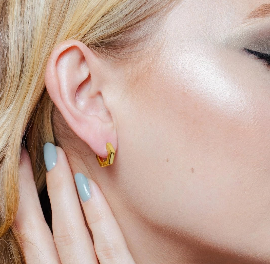 Small Hexagon Huggie Hoop Earrings Silver plPlated.