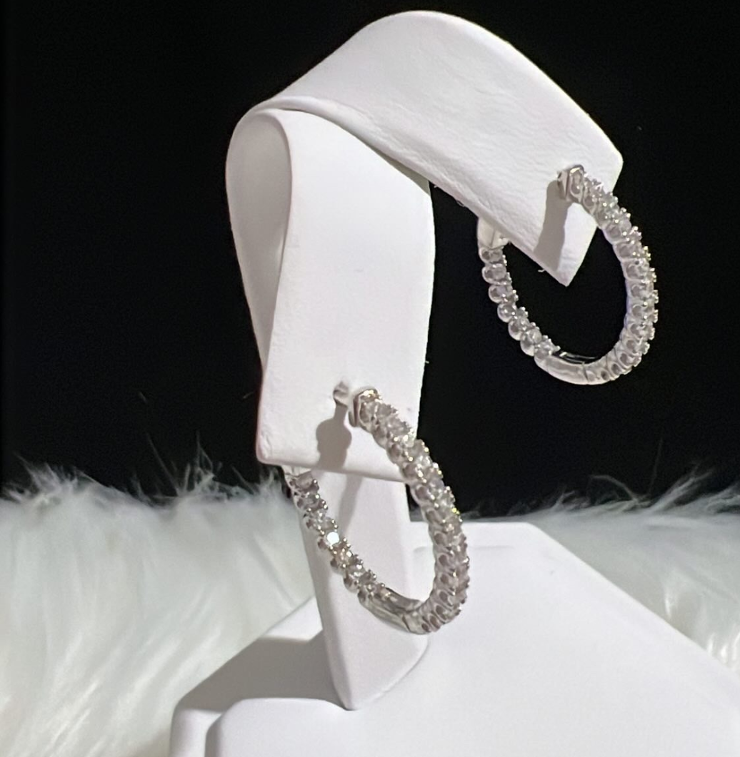 Rhodium Plated Eternity Clear CZ Hoop Earrings 20mm